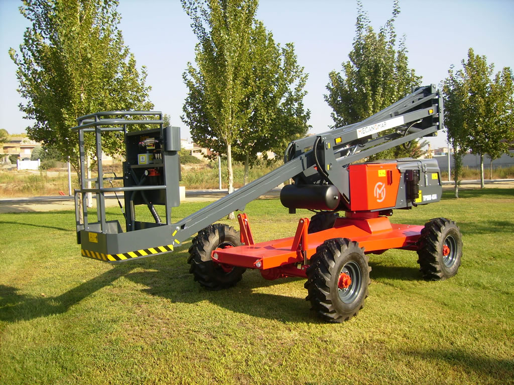 MECANO-MAR TP 1200 con una altura de trabajo de 14 mtrs, con gran rapidez en los movimientos de la cesta de trabajo. Ideales para la poda en altura, tanto en explotación agraria(chopos forestación)como en mantenimiento árboles de ciudad, camping, zonas urbanas, propiedades particulares( jardines etc...).